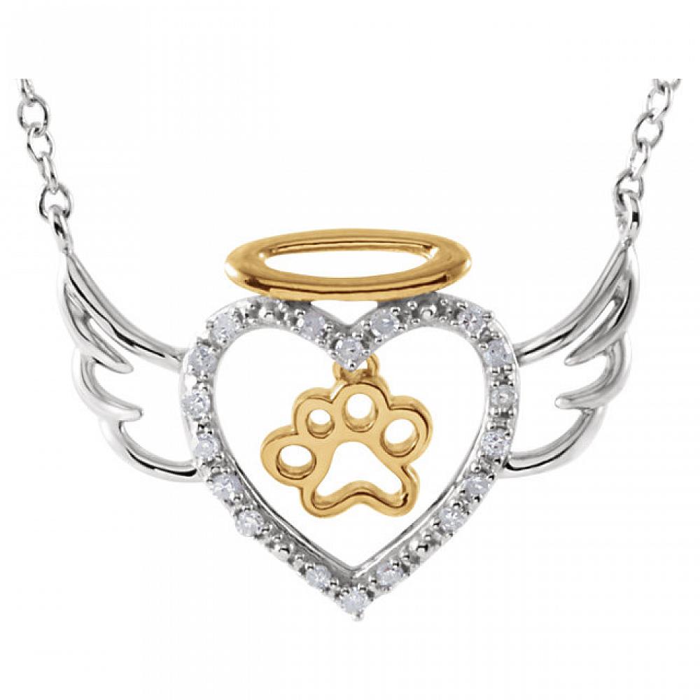 .08 CTW DIAMOND STERLING SILVER ANGEL HEART PAW NECKLACE