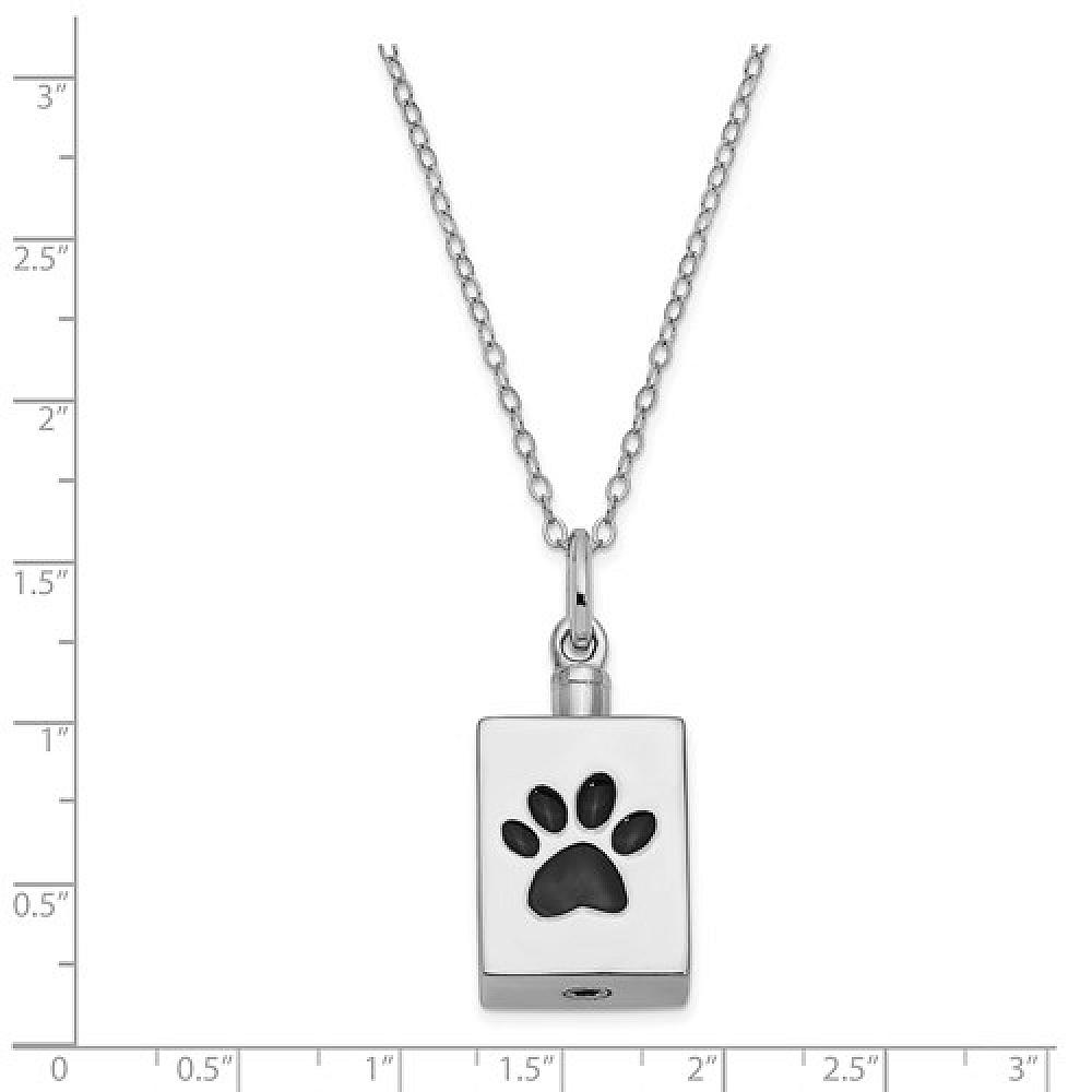 This box shaped pet ashes pendant is 925 sterling silver and rhodium plated to protect the sterling silver and keep it from tarnishing! It comes with an 18 inch cable chain to complete this lovely pet remembrance. Please see the photos for sizing information.
